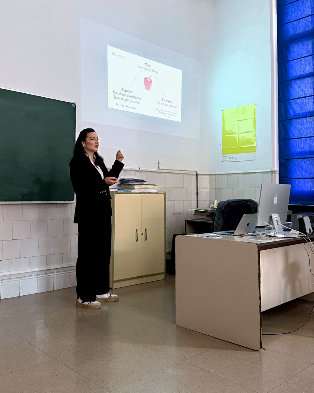At the same time, Ermina Ušanović delivered a two-day lecture and workshop for first-year Graphic Design students on the theme of visual metaphors. Through a combination of theoretical input and hands-on exercises, students explored how abstract ideas can be transformed into visual form using symbols, shapes, and color. The workshop emphasized the power of visual language as a universal means of communication and encouraged students to think creatively about meaning-making in design.