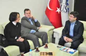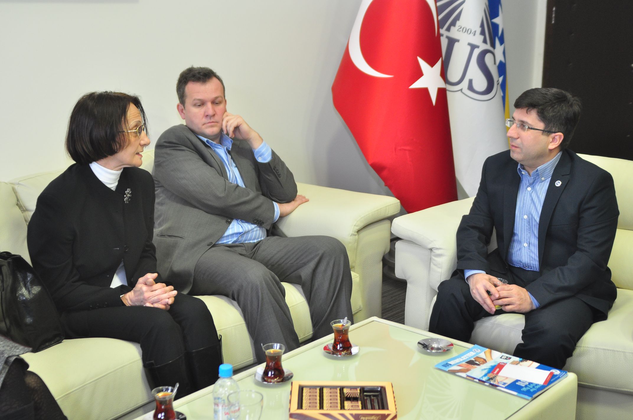 The delegation of the Ministry of Education, Science and Youth of Canton Sarajevo visited the International University of Sarajevo (IUS) on Thursday, February 5, 2015. Sifet Kukuruz, Assistant to Minister of Higher Education, Science and Youth of Canton Sarajevo came to visit with his fellow colleagues, Abid Fejzić, Assistant to Minister for preschool, primary and secondary education, Azemina Njuhović, – Assistant to Minister, Department for Computerization of Education and Science and Ljiljana Prelčec, Secretary of the Ministry. IUS Rector Prof. Dr. Yücel Oğurlu welcomed the distinguished guests in his office.