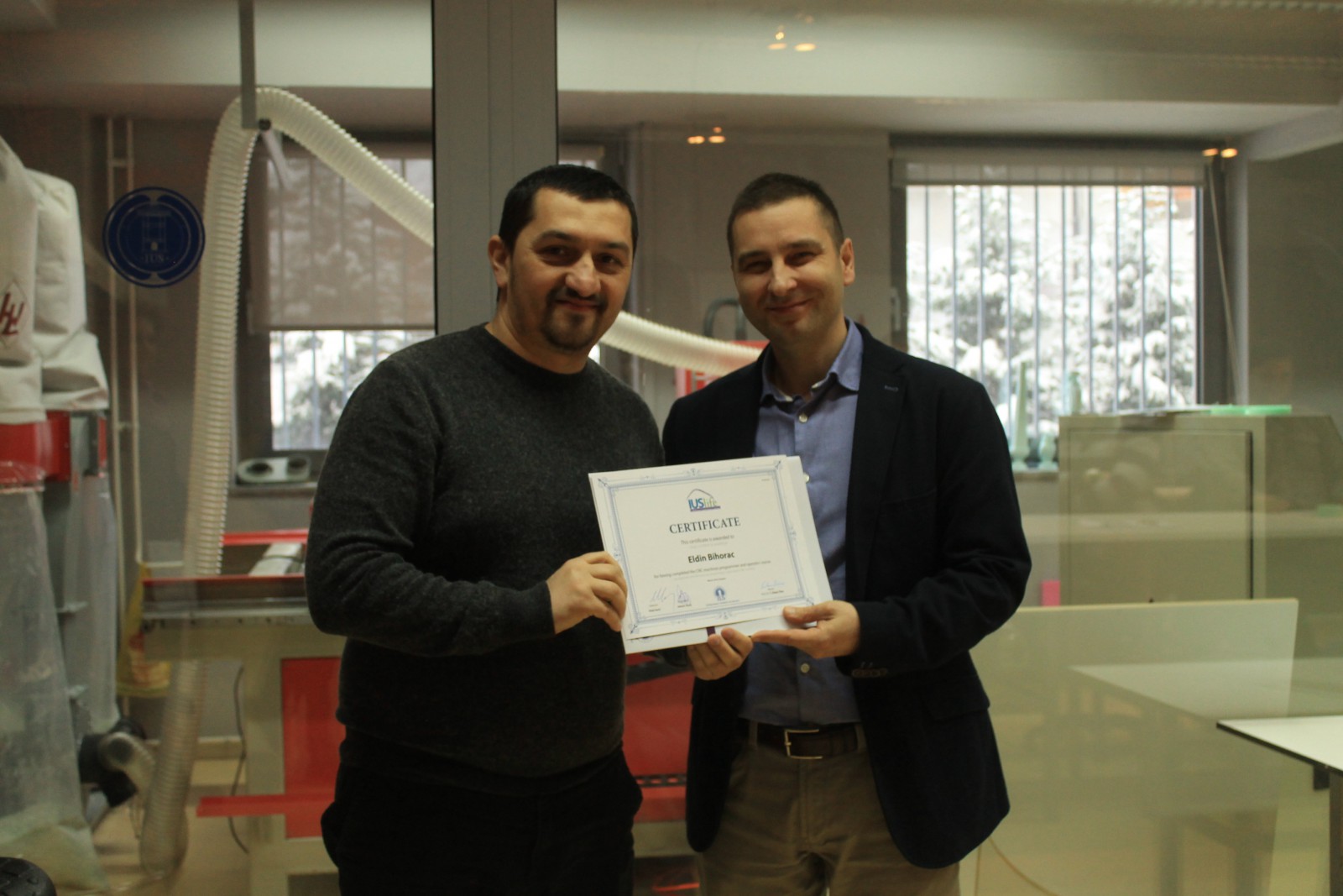 Uluslararası Saraybosna Üniversitesi Mimarlık Laboratuvarı’nda gerçekleşen CNC Makine Operatör / Programcı Kursu 22 Mart 2018, Perşembe günü başarıyla tamamlandı.