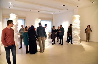The exhibition “Mystical Unveiling” by Spanish artist Ana Crespo arrived at the IUS Art Gallery on November 8, 2018. The exhibition was attended by a delegation of Embassy of the Kingdom of Spain in BiH, headed by deputy ambassador Mr. Nuño Santos. Her works are paper sculptures inspired by Sufism and work of Ibn Arabi.