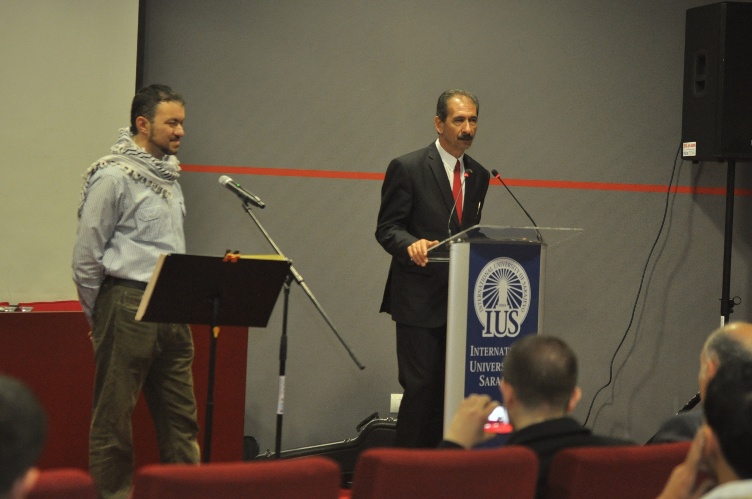 Bosna-Hersek Filistin Devleti Büyükelçisi Rezeq Namoor konserde ki konuşmasında, altı milyondan fazla filistinlinin kendi ülkelerinin dışında yaşadığını ve en iyi şeyin savaştan dolayı parçalanmış olan bu ülkeye dayanışma göstermek ve kültürünü tanıtmak olduğunu vurguladı. Sanatçı Abdul, şarkıcı, guitarist, tiyatro yönetmeni, yazar ve besteci olarak konserde Filistin ile ilgili şarkılar söyleyerek, Filistin’in müzik tarzının güzelliğini yansıttı. Konser öncesi IUS Rektörü Prof. Dr. Yücel Oğurlu Bosna-Hersek Filistin Devleti Büyükelçisi Rezeq Namoor ve beraberindekileri makamında ağırladı.