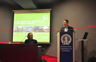 31 Mart 2015,Salı günü, Saraybosna Goethe Enstitüsü, Uluslararası Saraybosna Üniversitesi’nde (IUS) ‘Haydi Goethe Enstitüsü ile Almanca Öğrenelim’ başlıklı konferans sunumu gerçekleştirdi.