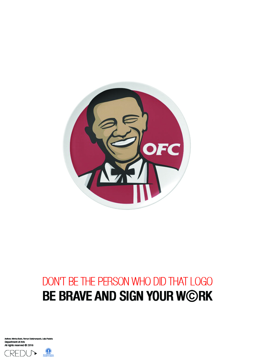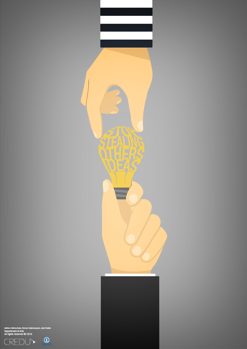 Bu kampanyanın posterleri intihal ve telif hakları konularını ele alan 3 ana stil çizgisi konseptini işlemiştir. Projenin konsept yazarları, konularında uzman: Doç. Dr. Lejla Panjeta, Uzm. Asist. Roman Sulejmanpasic MFA, Tasarımcılar Nadir Heric ve Merisa Basic tarafından yapılmıştır. Kampanyanın ortağı Doç. Dr Reyyan Bal’dır.