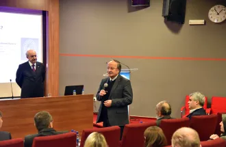 Rector Karaca started his lecture by giving, as he said: “his personal view as former dean of graduate school, vice rector, and now rector of the ITU, on how the universities are changing and transforming and what will happen in the future”. He said that contemporary and popular topics in higher education are: production of knowledge and information, science and technology innovation and entrepreneurship, social responsibility, global awareness and competition, etc. He also gave his view of what 21 century university objectives should be not only focusing on education, research, and exploitation of know-how, but also innovation. The second part of his lecture was devoted to presentation about the ITU’s science and technology park, its organization and ecosystem.
