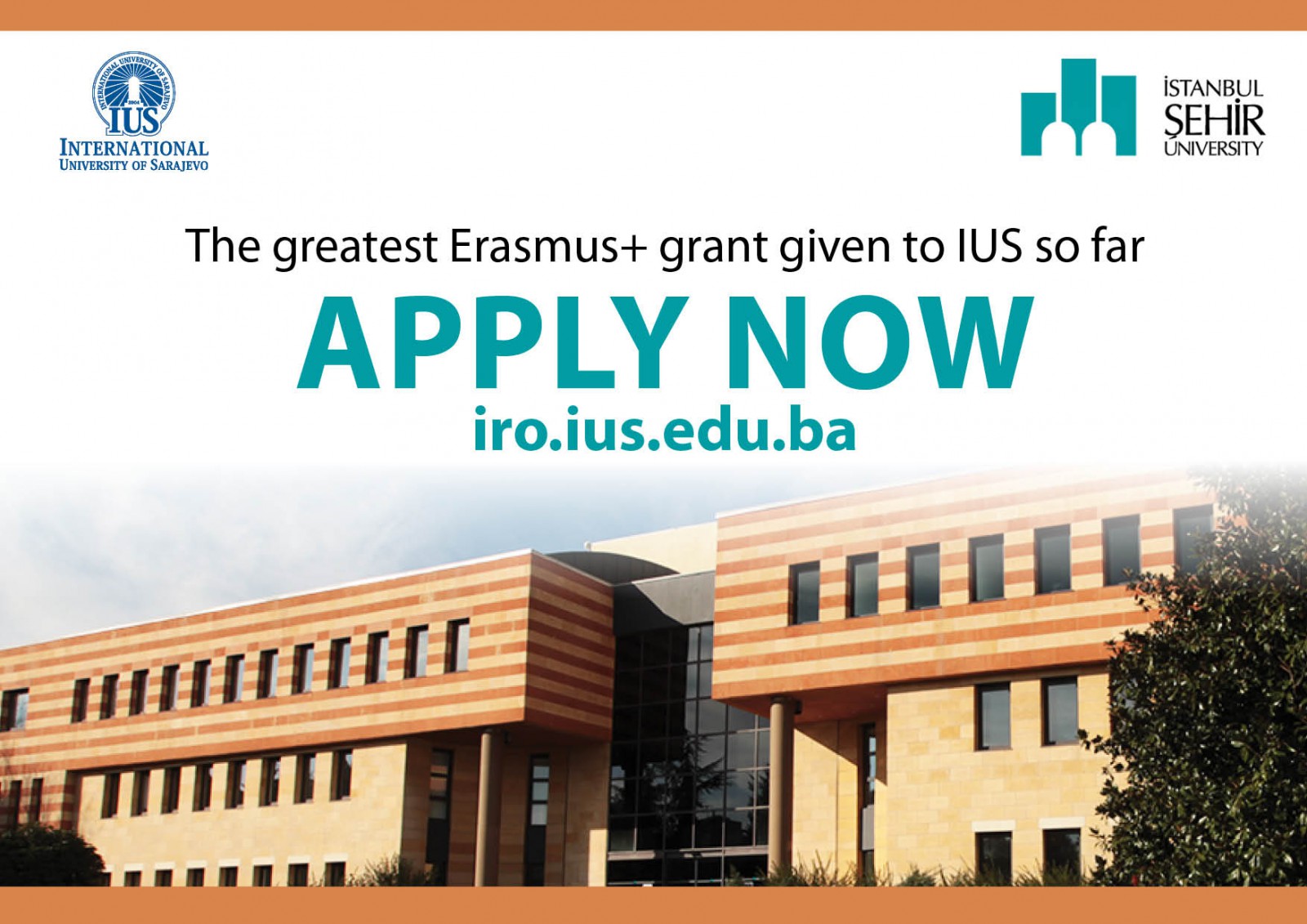 İstanbul Şehir Üniversitesi ile olan işbirliğinden ötürü Uluslararası Saraybosna Üniversitesi (IUS) 2016/2017 ve 2017/18 Akademik yılında 20 Lisan öğrencisi, 5 Akademisyen ve 5 İdari personeli için Erasmus bursu kazandı.