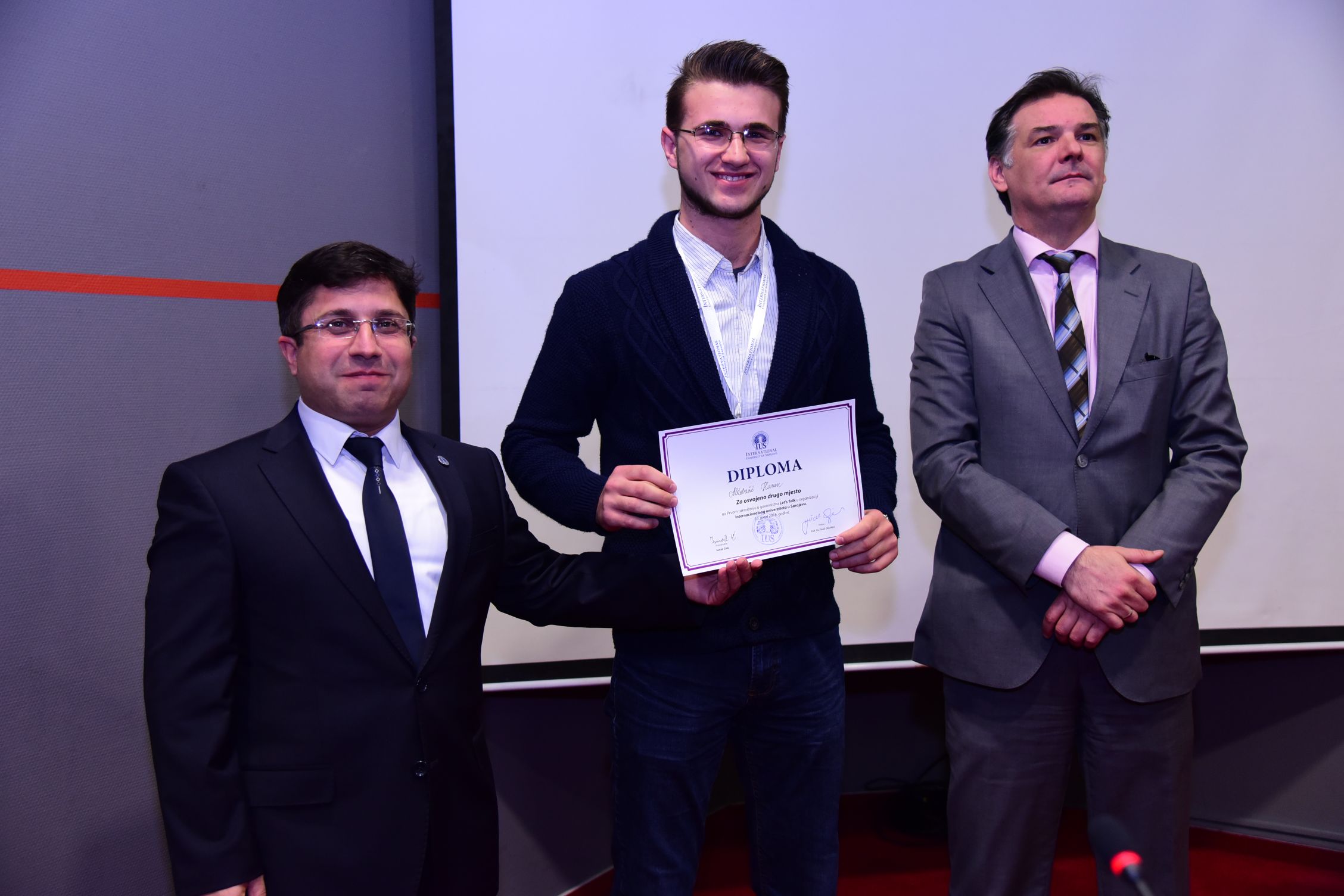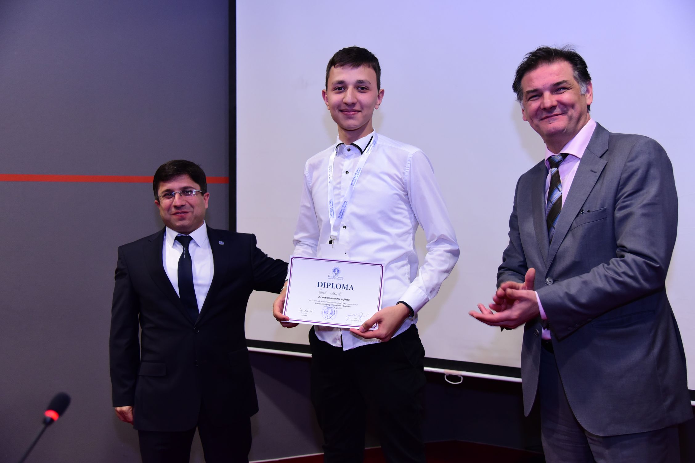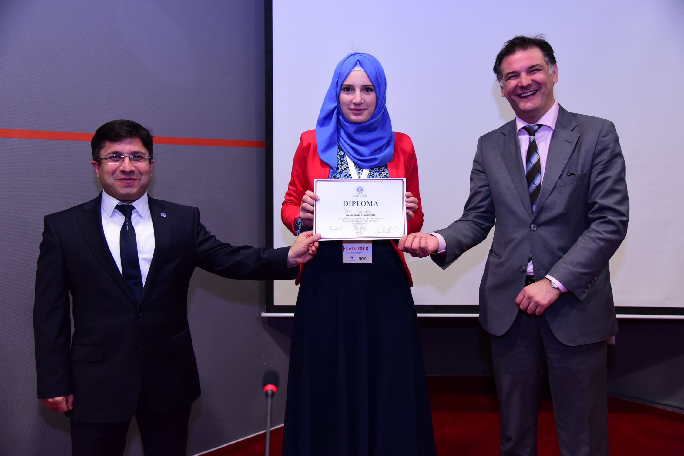 Let’s Talk Retorik Yarışması kazananı, Tuzla, Behram-begova Medresesinden Džumana Parlić idi. İkinciliği Gazi Hüsrev-Begova Medreresinden Harun Aldobašić ve üçüncülüğü de Saraybosna Sağlık Lisesi-Jezero’dan Ahmed Šarić aldı. IUS Rektörü Prof. Dr. Yücel Oğurlu ve Bakan Mirvad Kurić kazananlara ödüllerini takdim etti. (Ödüller; 300,200 ve 100 KM idi.)