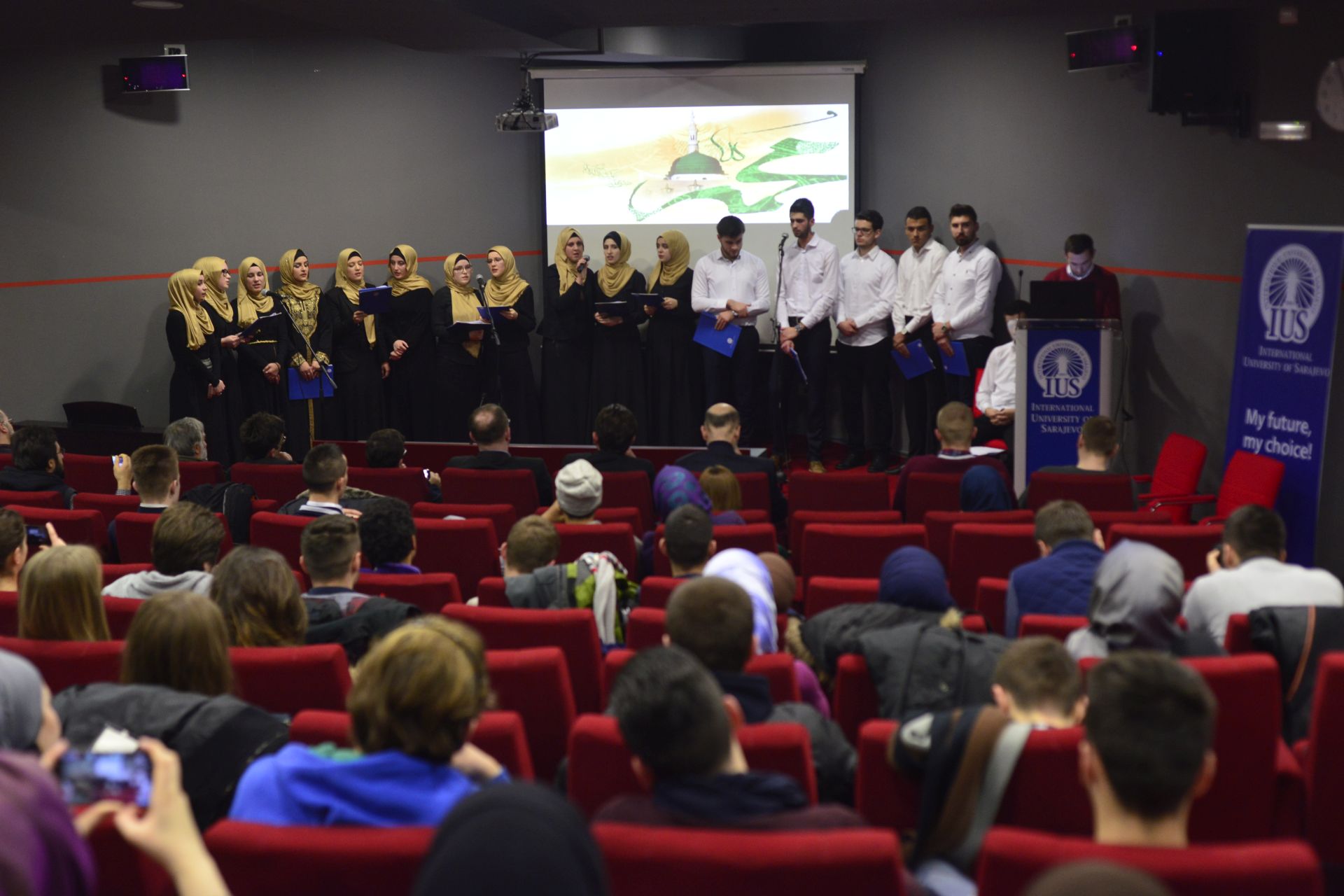 22 Aralık 2015, Salı günü, Peygamberimiz Muhammed s.a.s.’in doğumunu anma vesilesiyle IUS’ta, Avrupa Müslüman Öğrencileri Birliği (EMSA) tarafından ‘ Dünyalara Merhamet’ (Mercy to the Worlds)adlı geleneksel tezahür düzenlendi. Tüm konuk ve misafirler için Kulüp üyeleri, dört dilde ilahi ve Kur'an'dan sözler okuyarak kültürel açıdan zengin bir program hazırladılar. Programın başında,Hfz. Abdusamed Podojak, Kur’an-ı Kerim'den bir kısım okudu. Seçkin konuşmacı, Hfz. Dr. Kenan Musić, Peygamberimiz s.a.s.’in bize öğrettiği ve günümüzde de geçerli olan değerleri vurgulayarak,programa katılanlara seslendi. Programın sonunda, sevilen Peygamberimizin s.a.s. mübarek sözlerine hatıra olsun diye programa katılanlara hadislerle birlikte lokum dağıtıldı.
