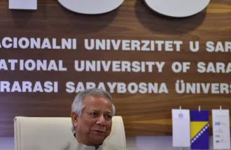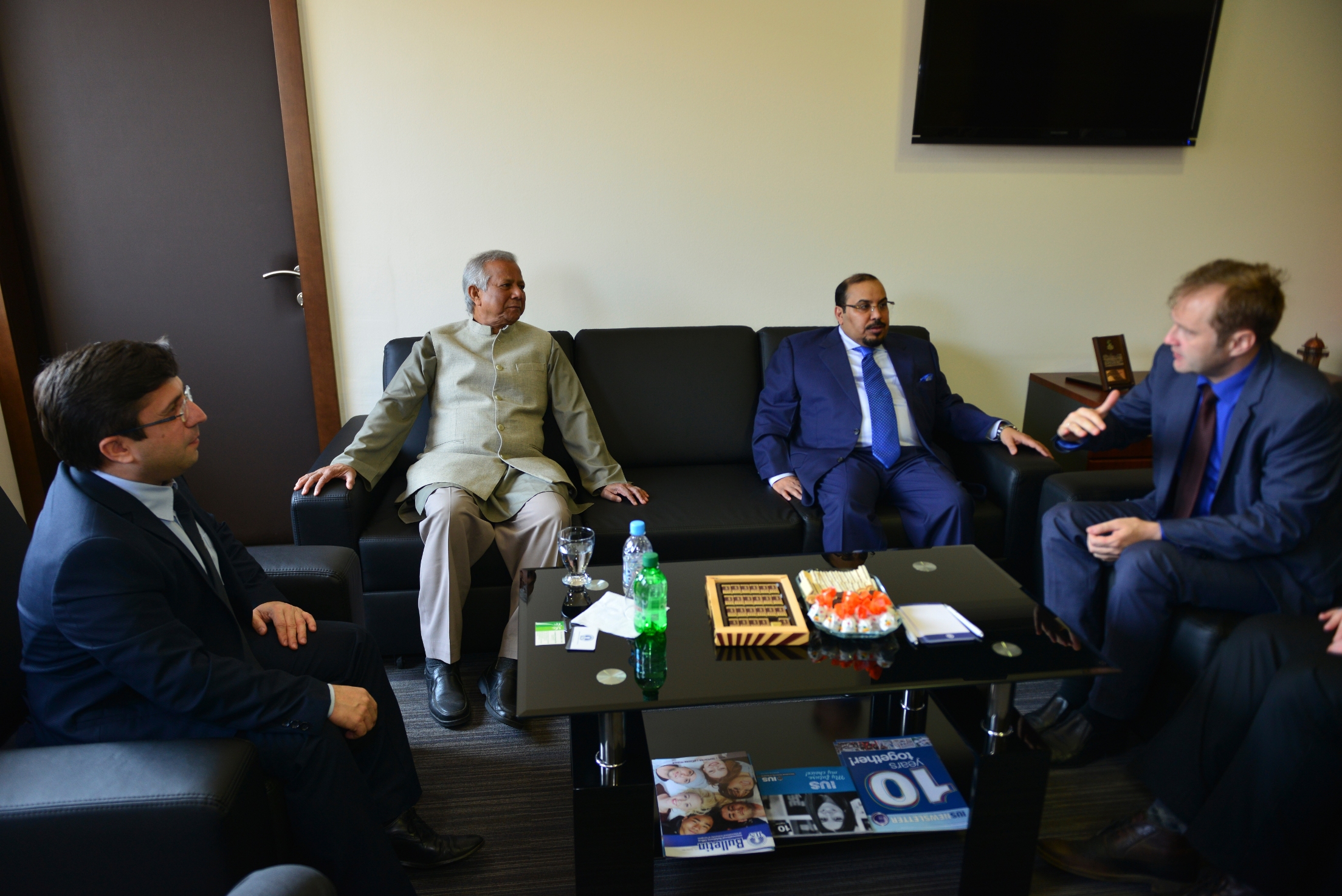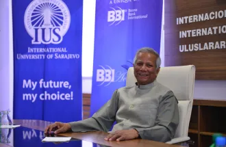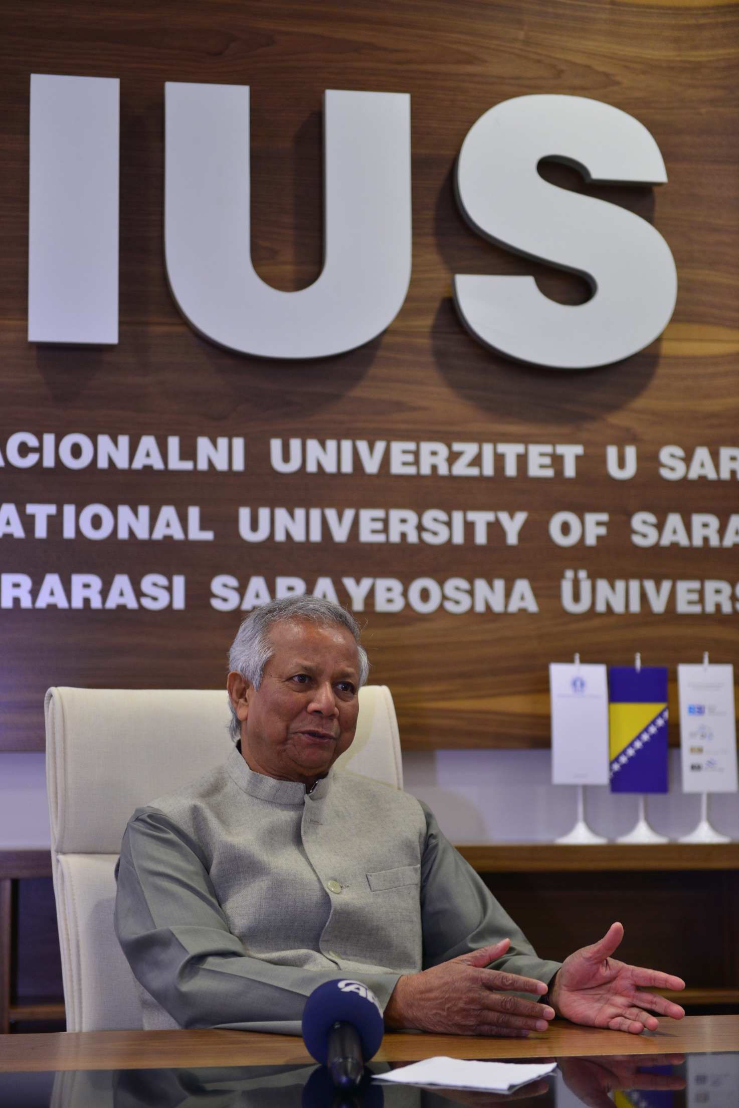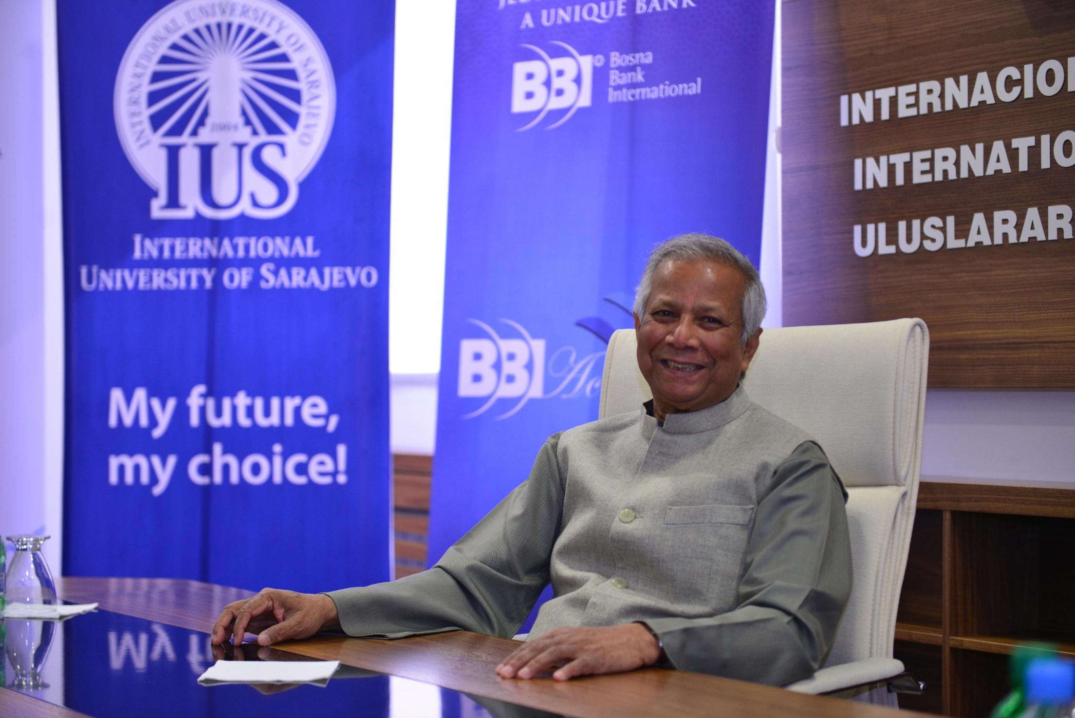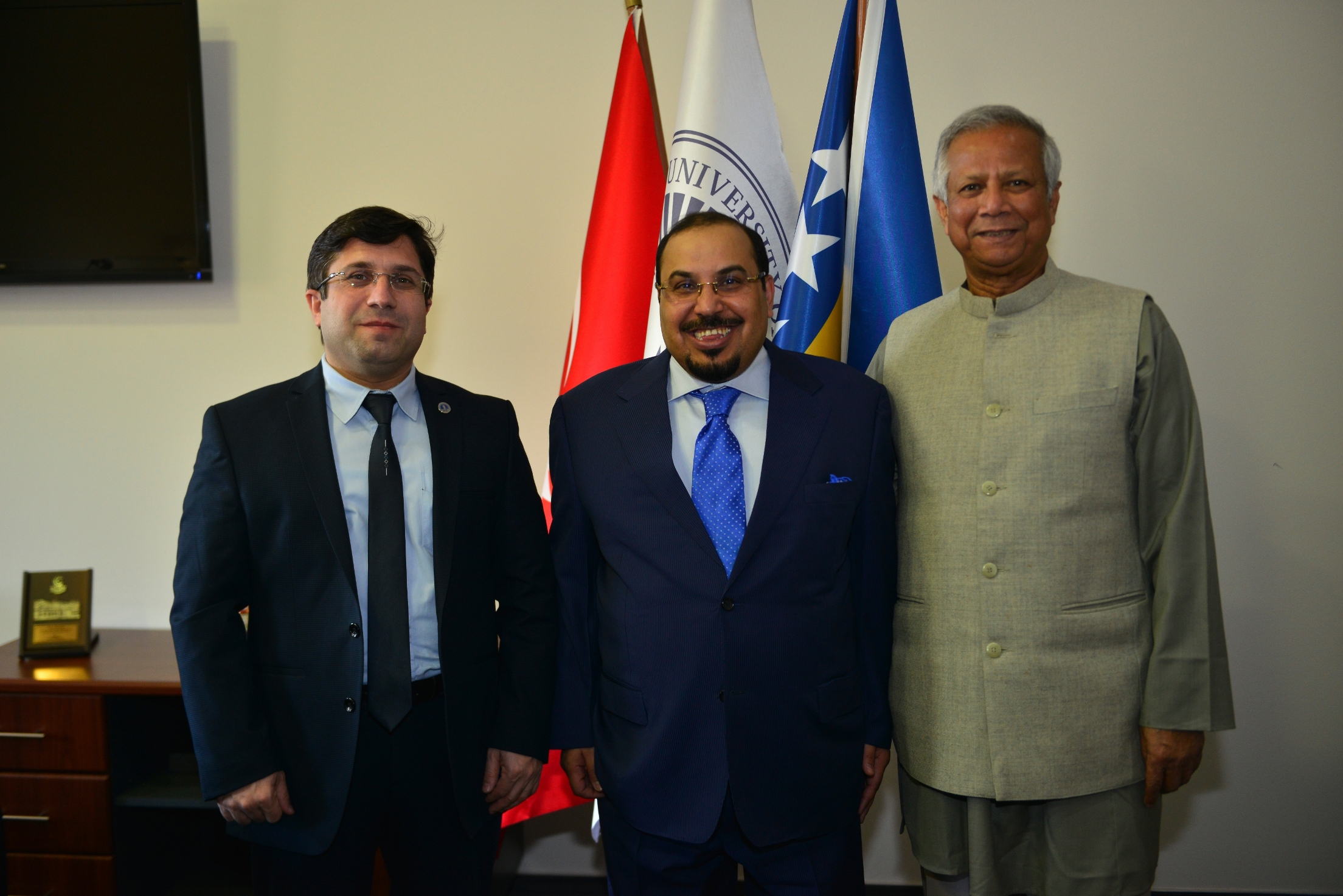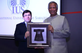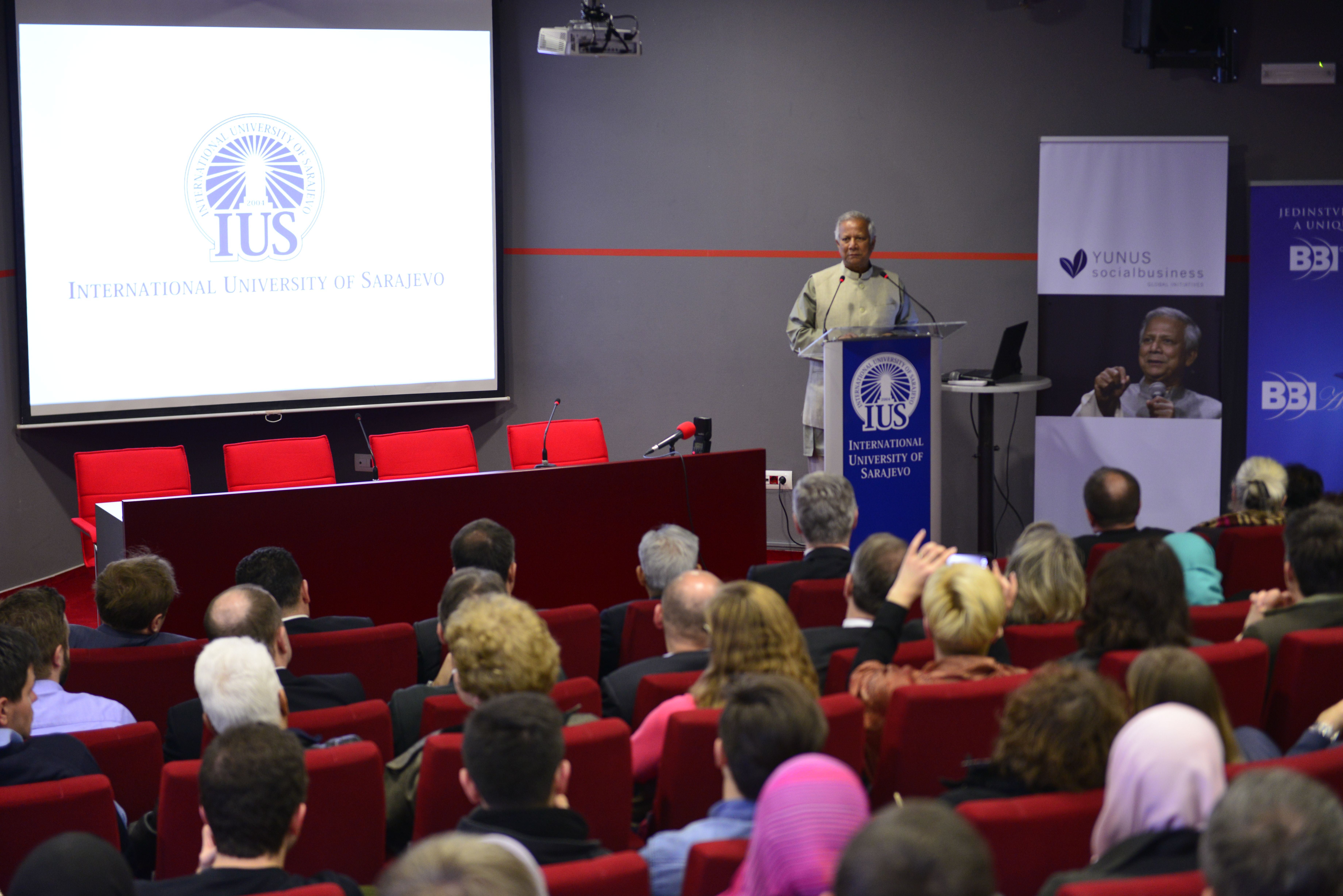 On Monday, March 23rd 2015, Nobel laureate Prof. Muhammad Yunus visited the International University of Sarajevo (IUS) and met the Rector of IUS, Prof. Dr. Yucel Oğurlu. They discussed about the development of education in BiH in general and IUS progress in last 11 years in particular. After the meeting, Prof. Muhammad Yunus held inspirational lecture for VIP guests, professors and students, on the topic "The role of entrepreneurs in society". The great interest was shared about this lecture and it is worth to mention that main amphitheater was full beyond its capacity.