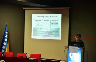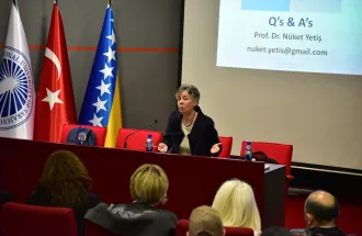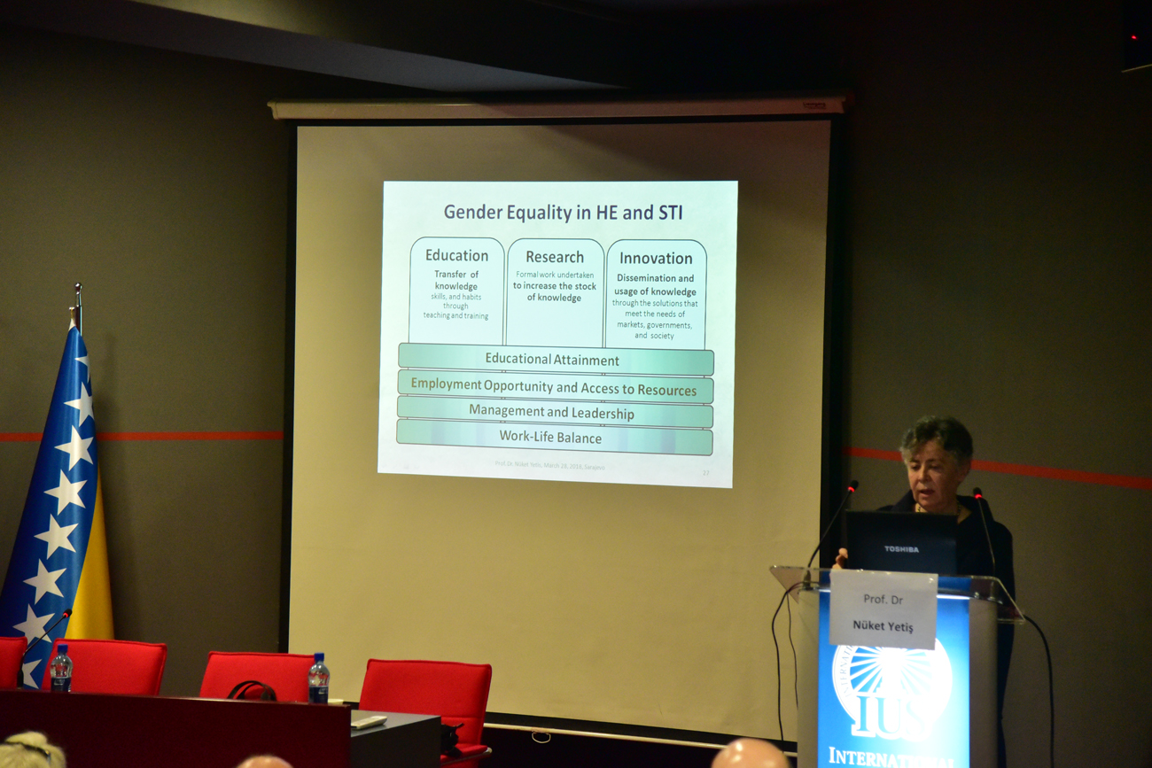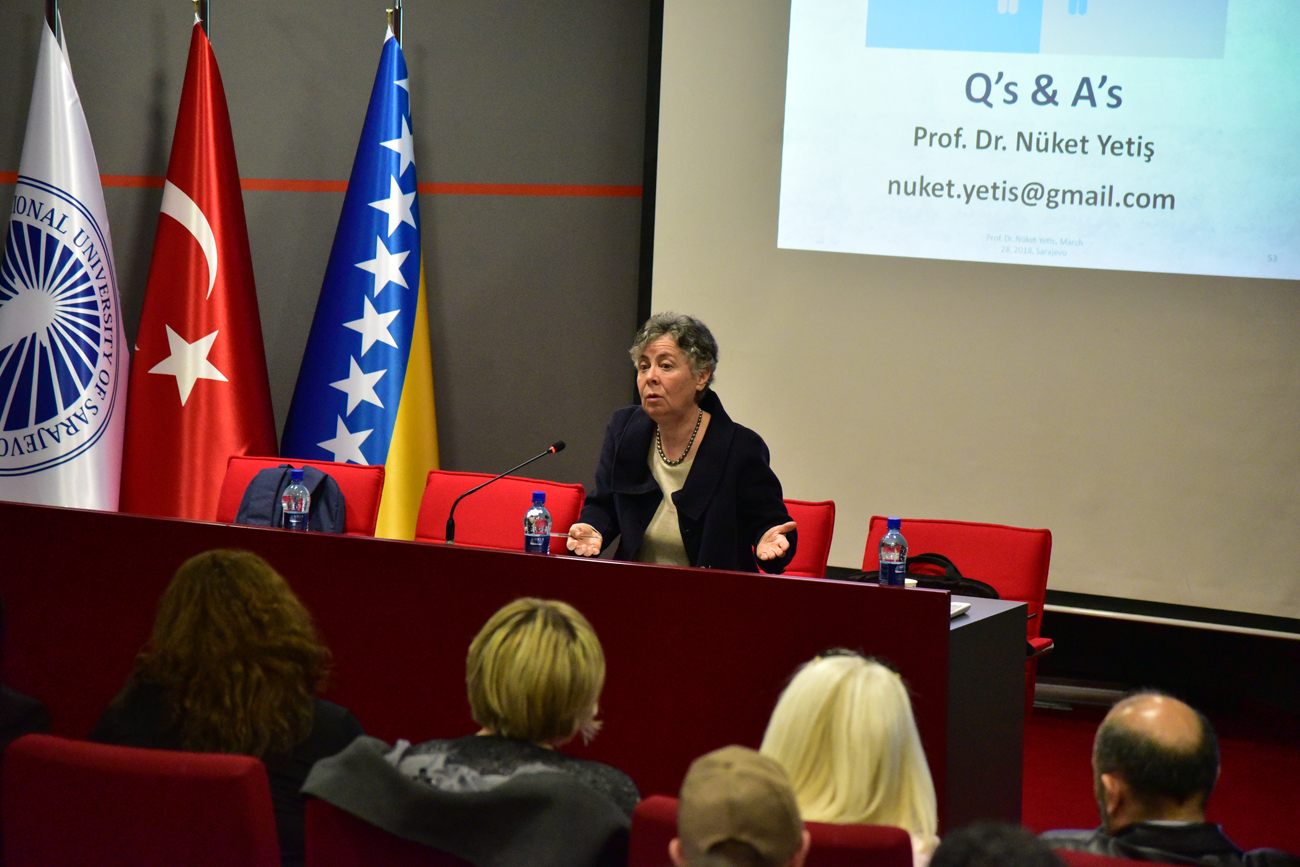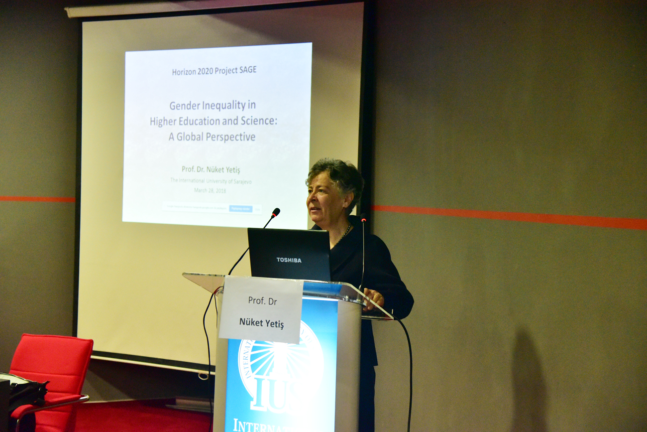 Prof. Dr. Nüket Yetiş, Horizon2020 SAGE Projesi kapsamında “Bilim ve Yükseköğretimde Cinsiyet Eşitsizliği: Küresel Bir Bakış Açısı” temalı bir konferans verdi. Etkinlik, 28 Mart 2018, Çarşamba günü Uluslararası Saraybosna Üniversitesi’nde gerçekleşti.
