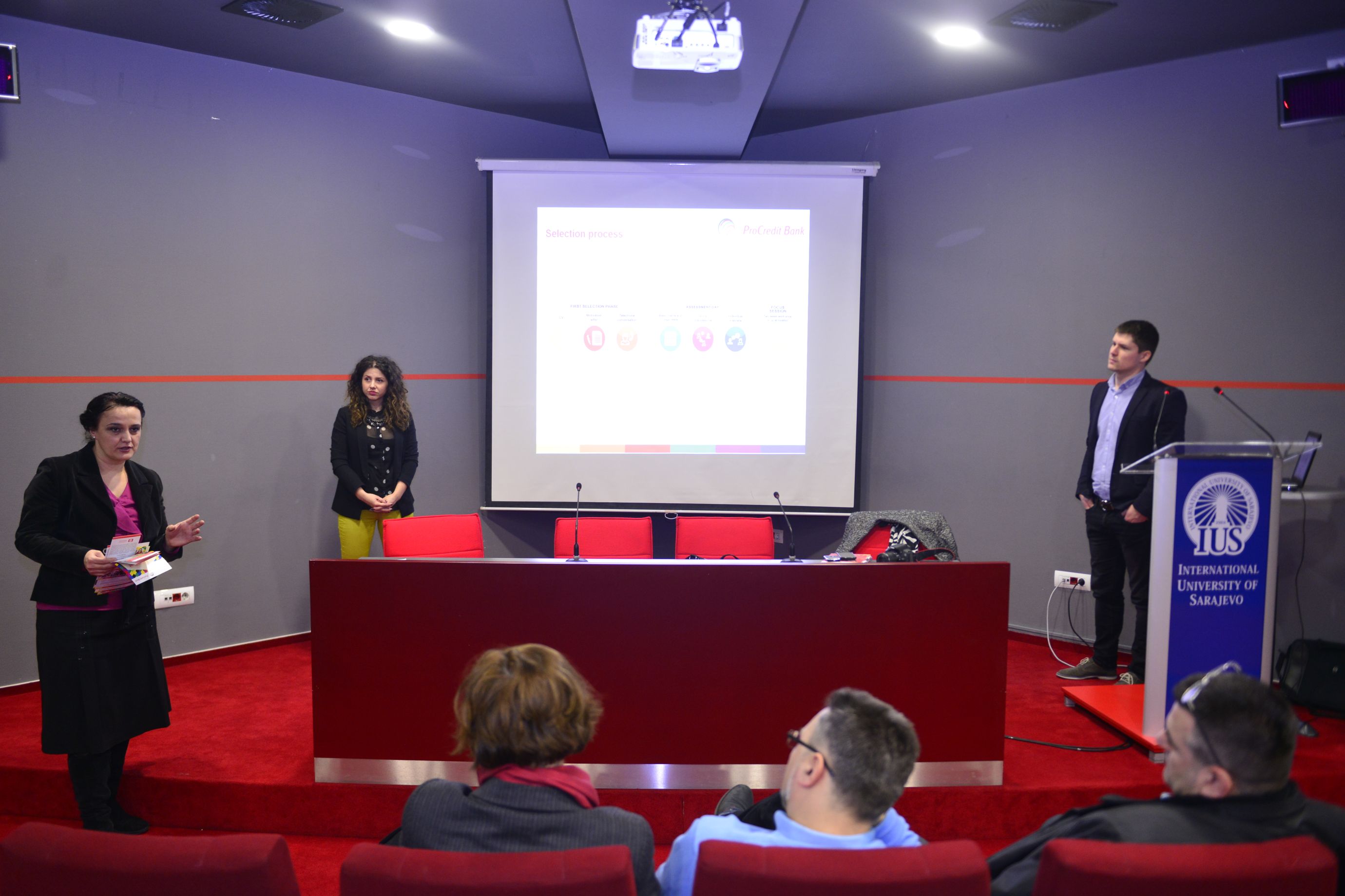9 Mart çarşamba günü,büyük amfide, IUS lifelong merkezinin organizasyonu altında, ProCredit Bankası temsilcileri "Mladi Bankar" programı hakkında kısa bir sunum yaptı. ProCredit Bankası sıklıkla mezunlara, tüm fakültelerin son sınıf öğrencilerine ve iş tecrübesi olan yada olmayan herkes için altı aylık eğitim düzenlemektedir. Bu, hem katılımcılar, hem de ProCredit Bankası için adayların tutumları ve kişisel niteliklerinin özel "ProCredit" çalışma şekline uyup uymadığını anlamak için eşsiz bir fırsat sunmaktadır. Bu Program ProCredit Bankasında bir kariyer başlatmak için tek yoldur. Program İngilizce dilindedir; teorik ve uygulamalı eğitimden oluşmaktadır. Eğitimin teorik kısmı Bosna-Hersek'te, uygulamalı kısmı ise Bosna-Hersek'te ProCredit Bankası şubelerinden birinde yapılmaktadır.