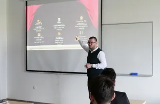 2 Nisan 2024 tarihinde, Uluslararası Saraybosna Üniversitesi İngiliz Dili ve Edebiyatı eğitim programı, ELIT 415 Shakespeare dersi öğrencilerine Shakespeare'in ünlü bir oyunu olan "Much Ado About Nothing" hakkında eğitici bir ders vermesi üzere, şu anda IUS İngilizce Dil Okulu'nda öğretim görevlisi olarak görev yapan doktora adayı Damir Kahrić'i ağırlamıştır. Sayın Kahrić, kapsamlı bilgi birikimi ve kişisel oyunculuk deneyiminden yararlanarak, izleyicilerin dikkatini çekerek ve öğrenciler arasında canlı tartışmalar başlatarak oyunun içgörülü bir analizini yapmıştır.