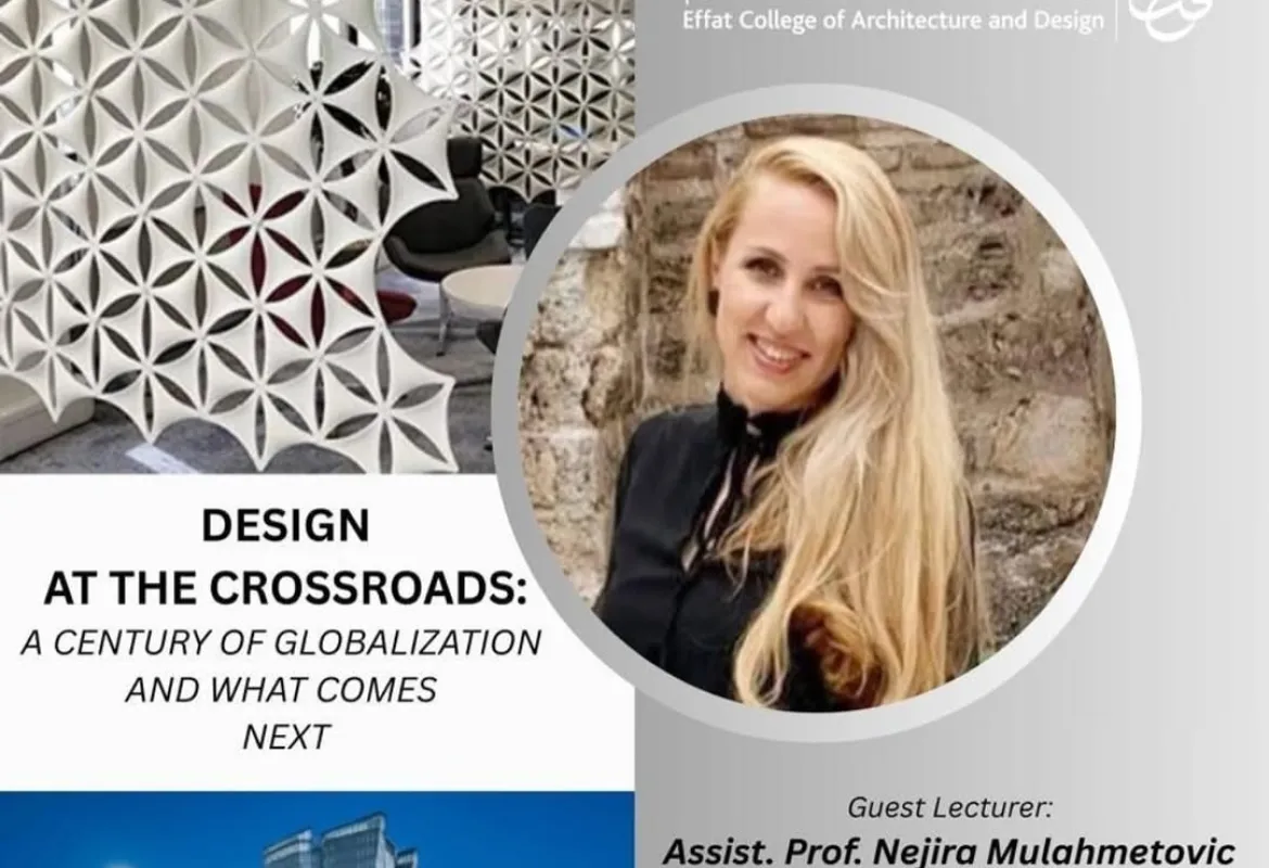 17 Nisan 2025 Perşembe günü, Uluslararası Saraybosna Üniversitesi (IUS) Görsel Sanatlar ve Görsel İletişim Tasarımı (VACD) yüksek lisans programından Dr. Nejira Mulahmetović, Suudi Arabistan’ın Cidde kentindeki Effat Üniversitesi'nde “Design at the Crossroads: Küreselleşmenin Yüzyılı ve Sırada Ne Var?” başlıklı bir konuk konuşması düzenlemiştir.