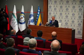 Milli Savunma Bakanı Sayın Hulusi Akar, dinleyicilere hitaben yaptığı konuşmada, böylesine saygın bir akademisyen ve öğrenci topluluğuyla bir arada bulunmaktan mutluluk duyduğunu söyledi ve bu durumun en önemli faktörlerden birinin iyi bir eğitim sistemi kurulduğu için olduğunu vurguladı. Üzerinde durduğu bir diğer konu ise Bosna-Hersek ile Türkiye arasındaki tarihsel olarak iyi ilişkilerin, ortak kültürün ve tarihi bağların altını çizdi. Akar, Türkiye'nin çıkarının Balkanlar'ın istikrarının yanı sıra Bosna-Hersek'in siyasi birliği, istikrarı ve toprak bütünlüğü olduğunu vurguladı.