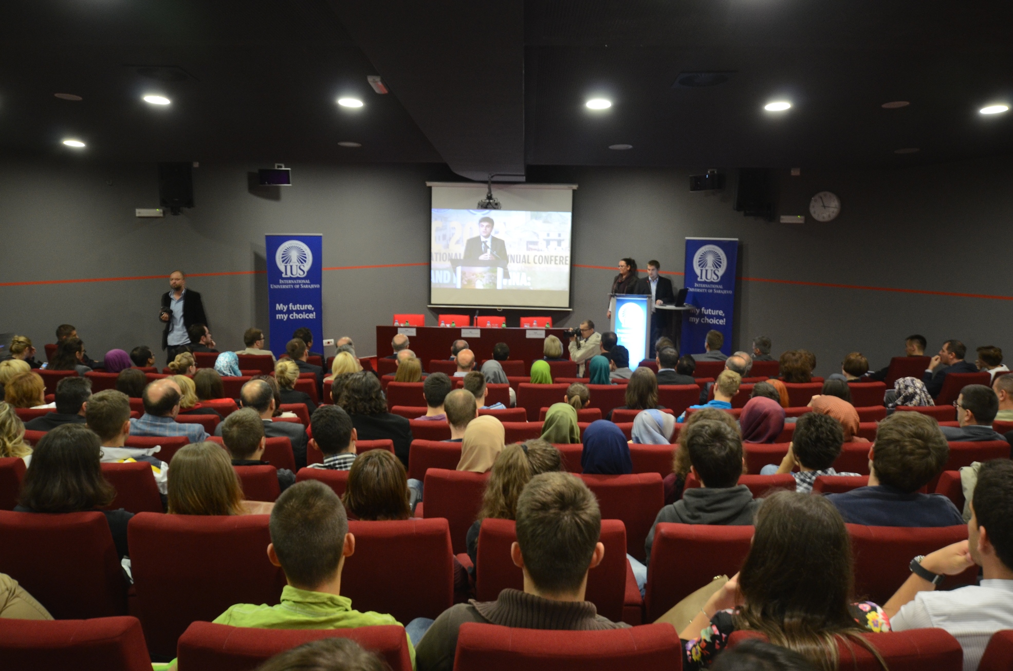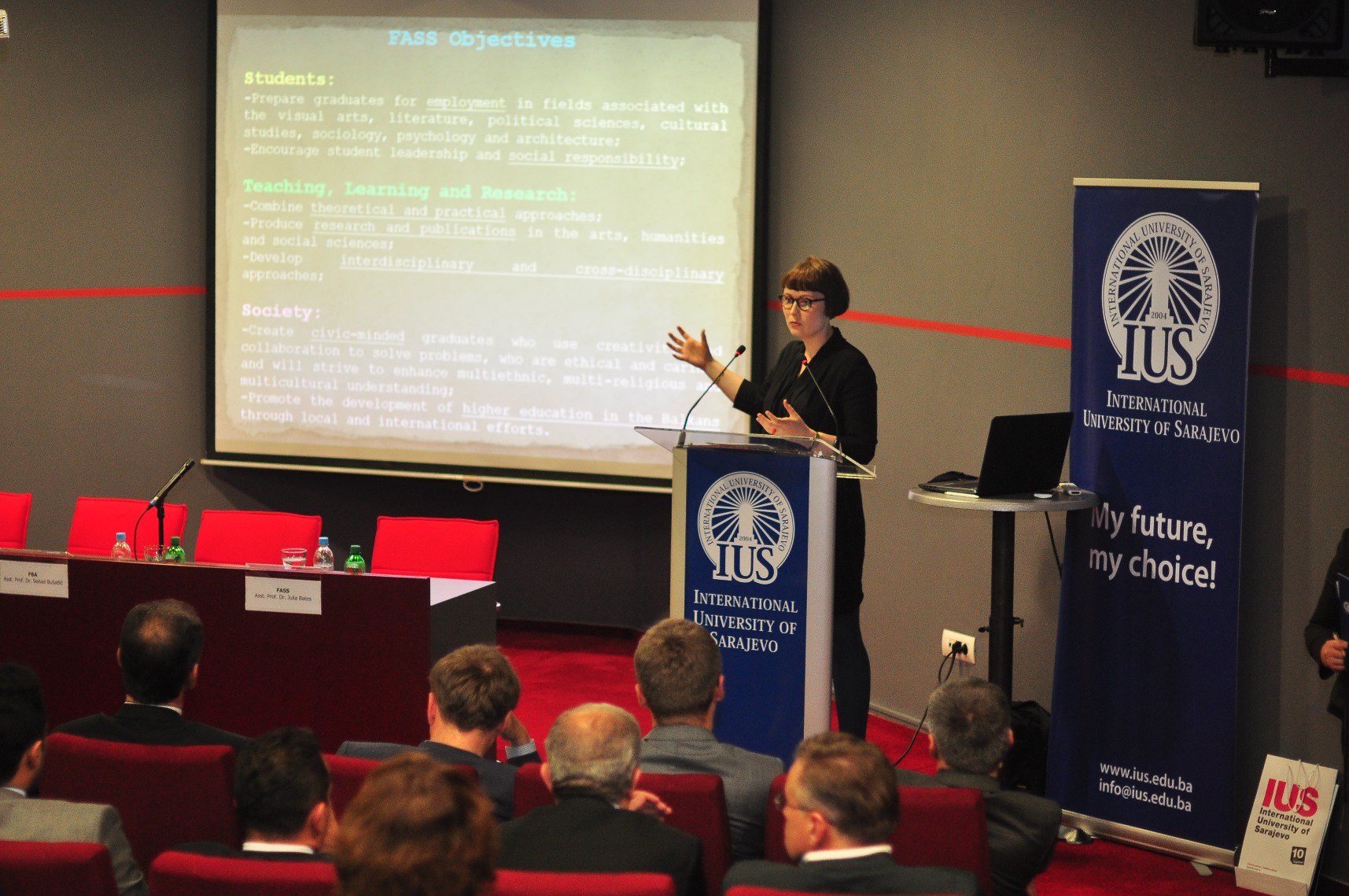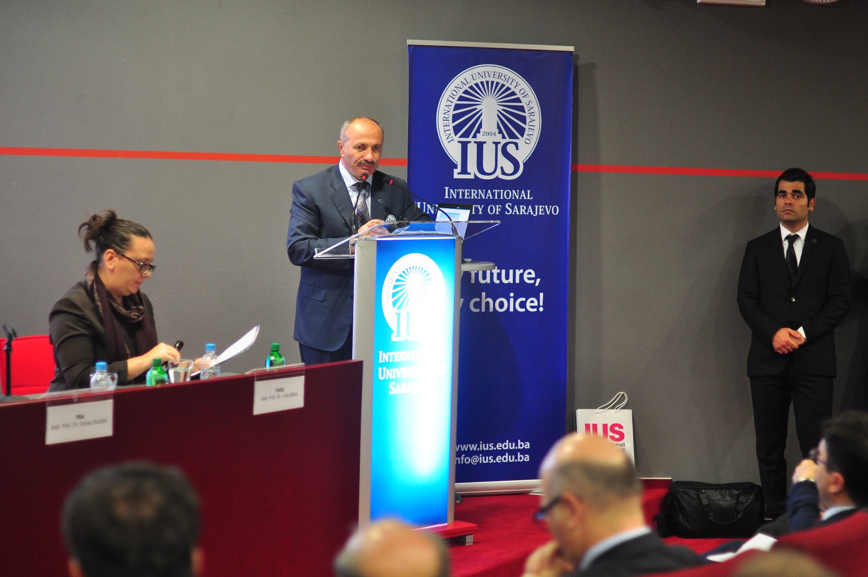 Saraybosna eğitimi geliştirme vakfı (SEDEF) başkanı Hasan Topaloğlu törende konuklara ve öğrencilere hitap ederek Üniversiteye katılan yeni öğrenci sayısından ve IUS’u tercih etmelerinden dolayı duyduğu memnuniyeti dile getirdi. Açılış Töreninde Bosna-Hersek Bilim ve Sanat Akademisi (ANUBIH) temsilcisi ve akademisyen Prof. Dr. Adila Pašalić-Kreso da bir konuşma yaptı. Konuşmasında gençleri, kendilerini eğitmede ve geliştirmede hevesli gördüğü için duyduğu memnuniyeti dile getirdi. Prof. Dr. Adila Pašalić-Kreso ayrıca gelecekte IUS ve ANUBİH arasında akademik eğitim alanında kurulabilecek işbirliği içinde istekli olduklarını vurguladı.