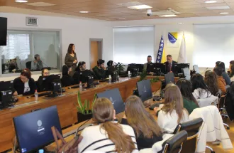 Öğrenciler, HJPC BiH Başkanı Sayın Halil Lagumdžija tarafından sıcak bir şekilde karşılandı ve kendilerine kurumun çalışmaları ve tarihi tanıtıldı. Ayrıca BH HJPC'nin organizasyon yapısının yanı sıra kurumun temel yetkinlikleri, adli makam sahiplerinin atanma ve terfi süreci ile hakim ve savcıların olası disiplin sorumluluklarının belirlenmesi süreci hakkında bilgi edinme fırsatı buldular. Bu konular Atama ve Terfi Dairesi Başkanı Sayın Jasmin Čalija ve Disiplin Başsavcı Vekili Sayın Mirza H. Omerović tarafından sunulmuştur.