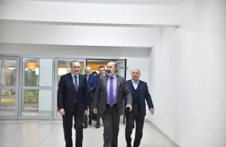 Ziyaret heyeti, Vakıf Başkanımız Sayın Hasan Topaloğlu, Üniversitemiz rektörü, Prof. Dr. Ahmet Yıldırım, tarafından karşılandı.