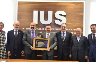 Saraybosna’ya ziyareti sebebiyle Üniversitemize de bir ziyaret gerçekleştirmekten duyduğu mutluluğu ifade eden Müsiad kurucu başkanı Erol Yarar ise, üniversite yetkililerini başarılı çalışmalarından ötürü tebrik ederek, Uluslararası Saraybosna Üniversitesi'nin, Türkiye – Bosna Hersek münasebetlerinin güçlenmesine katkı sağladığını ve gelecekte de sağlamaya devam edeceğini ifade etti. İTO Başkanı sayın Şekib Avdagic ise, üniversitenin kuruluşundan itibaren büyümesine şahitlik ettiğini belirterek, Saraybosna’da düzenlenecek olan Uluslararası İşadamları Forum’unda üniversitemizide bir çözüm ortağı olarak görmek istediklerini söyledi. Heyetin ardından söz alan Türkiye Cumhuriyeti Saraybosna Büyükelçisi sayın Haldun Koç beyefendi ise, IUS'un Türkiye'nin tanıdığı ve eğitim bakımından şu an Bosna Hersek'te bulunan en güçlü adres olduğunu belirterek, “Bu farkındalığı yaratmak ve belirtmek için bu gibi üst düzey heyetlerin üniversiteyi ziyaret etmelerinin çok önemli olduğunu vurguladı. Bosna Hersek’te gerçekleştirilecek etkinliklerin ülkedeki Türk kurumlarının ortak çalışmalarıyla başarılı bir şekilde yapılabileceğini aktaran Koç, bu kurumlardan en önemlilerinden birinin de IUS olduğunu ve bugünkü ziyaretinde bu amaca katkı sağlayacak şekilde sonuçlanmasını dilediğini söyledi. Ayrıca Koç, Elçiliğin yapmış olduğu tüm etkinliklere destek olarak, ortak çalışmalarından dolayı IUS'a teşekkür etti.Heyete üniversitenin Bosna Hersek ve Balkan coğrafyası için ne kadar önemli olduğunu vurgulamasının ardından, vakıf başkanımız Hasan Topaloğlu, heyetin üniversitemize gerçekleştirdiği ziyaretten duyduğu memnuniyeti dile getirdi.