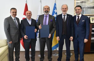 Bir dizi temaslar için Saraybosna’da bulunan heyete Rektörümüz Prof. Dr. Ahmet Yıldırım, üniversitemizin Akademik ve öğrenci yapısı, tanınırlığı, Balkanlarda ve özellikle Avrupada tanıtım alanındaki gelecek faaliyetleri ve mevcut durumu hakkında bilgi verdi.